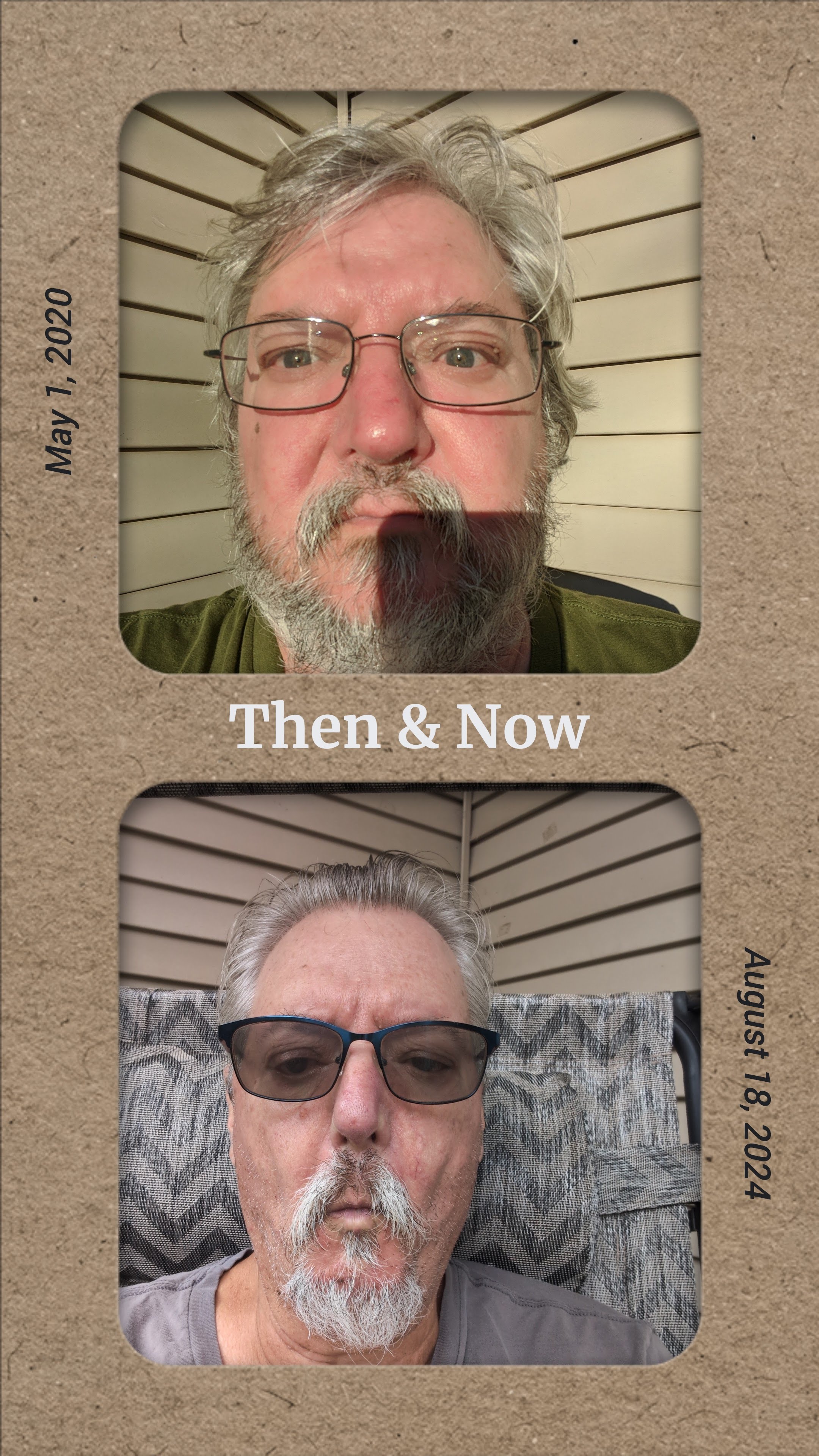 Below is a photo from 2020 and from 2024 demonstrating the difference in weight. My weight records start with 301.6lb on June 56th 2021. August 18th I weighted 237.2lb