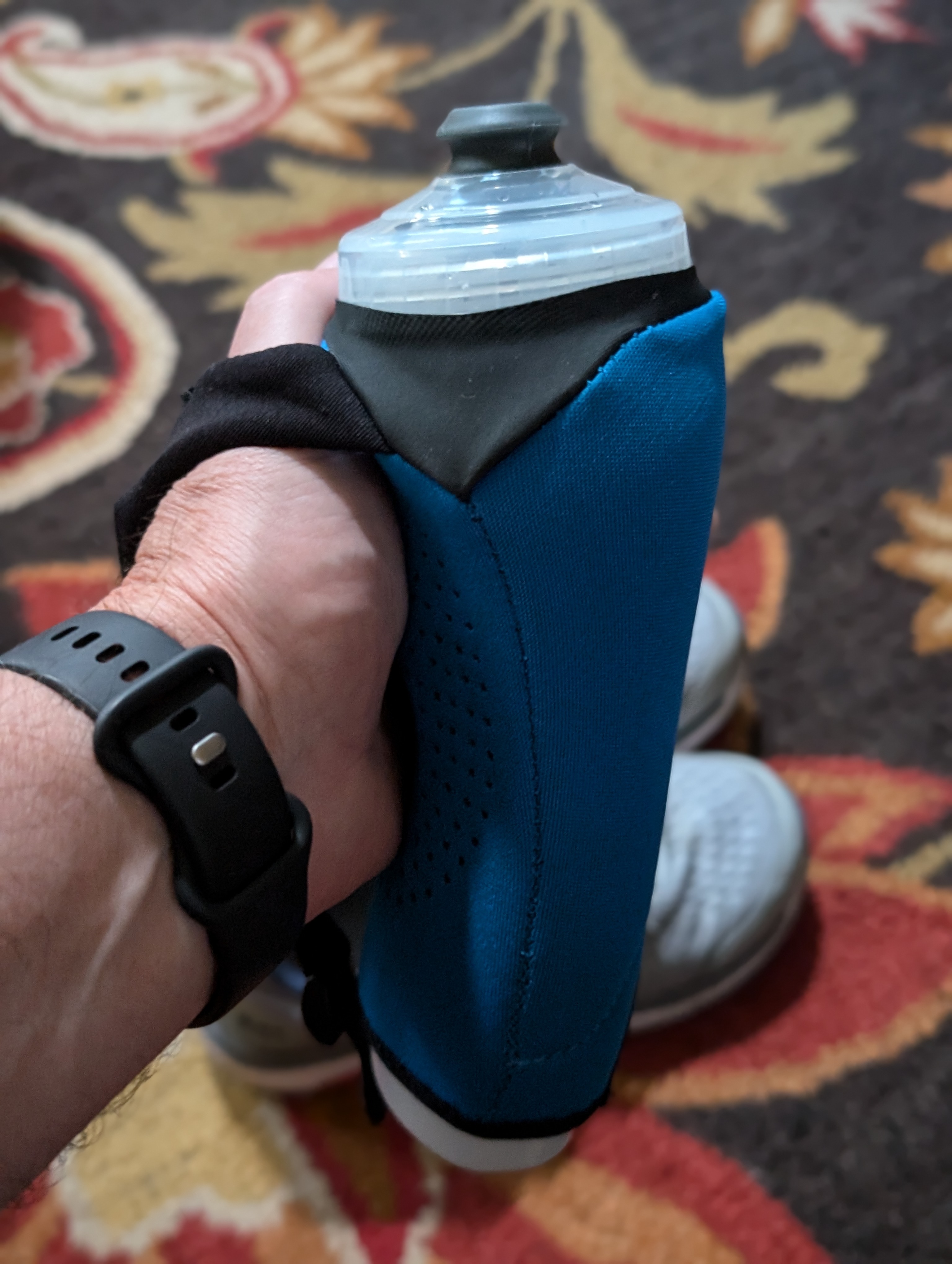 This is an Amphipod Hydraform Ergo-Lite Handheld 10.5 oz Water Bottle that I carry for my 3 hour 11.8 mile walks on Saturday and Sunday. It’s very comfortable and very easy to use.