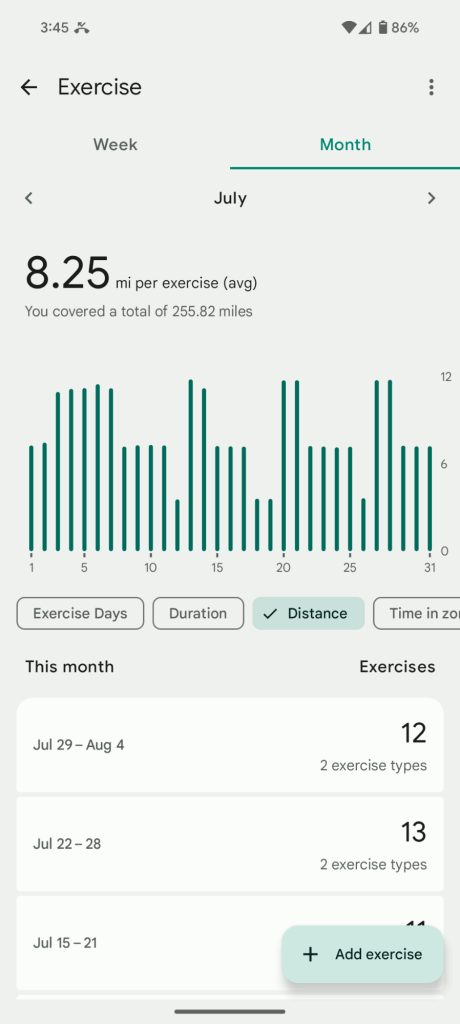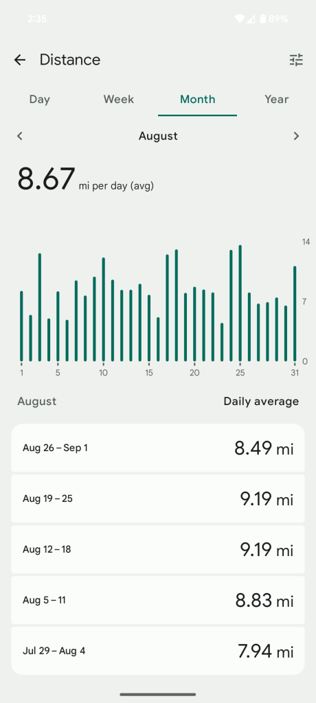 in the below series of captures from my Fitbit app I have been consistent with no missed days from the last week in March to currently August. I feel this consistency is what is contributing to my current weight loss progress.