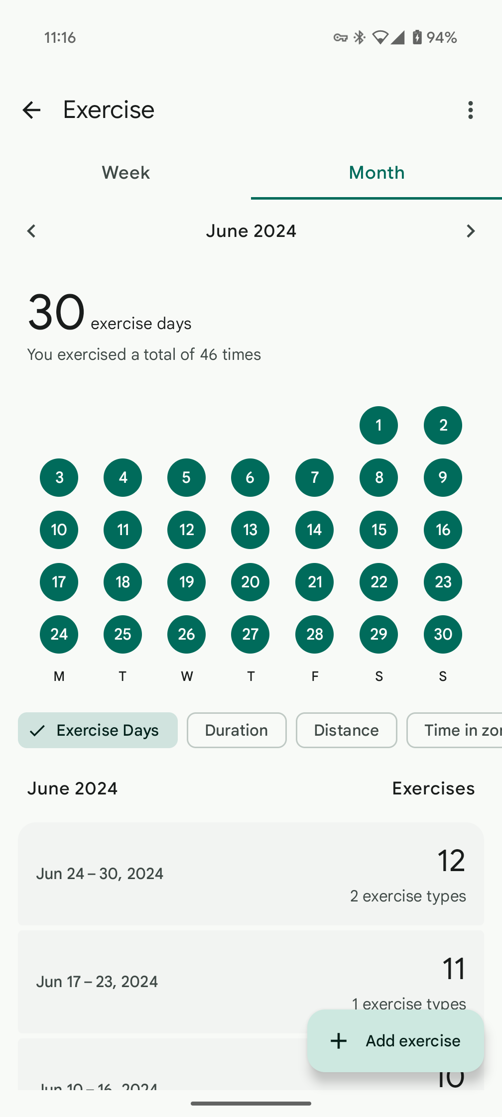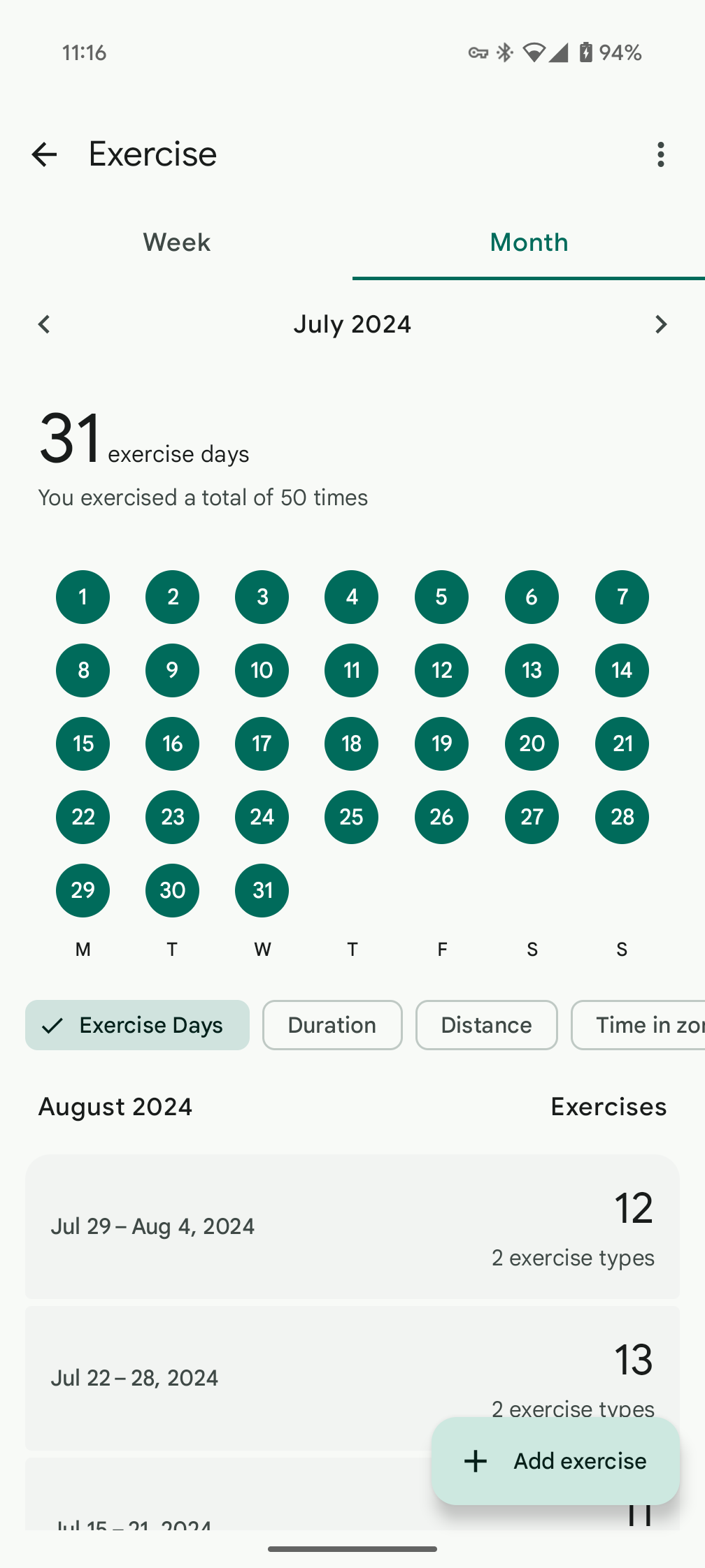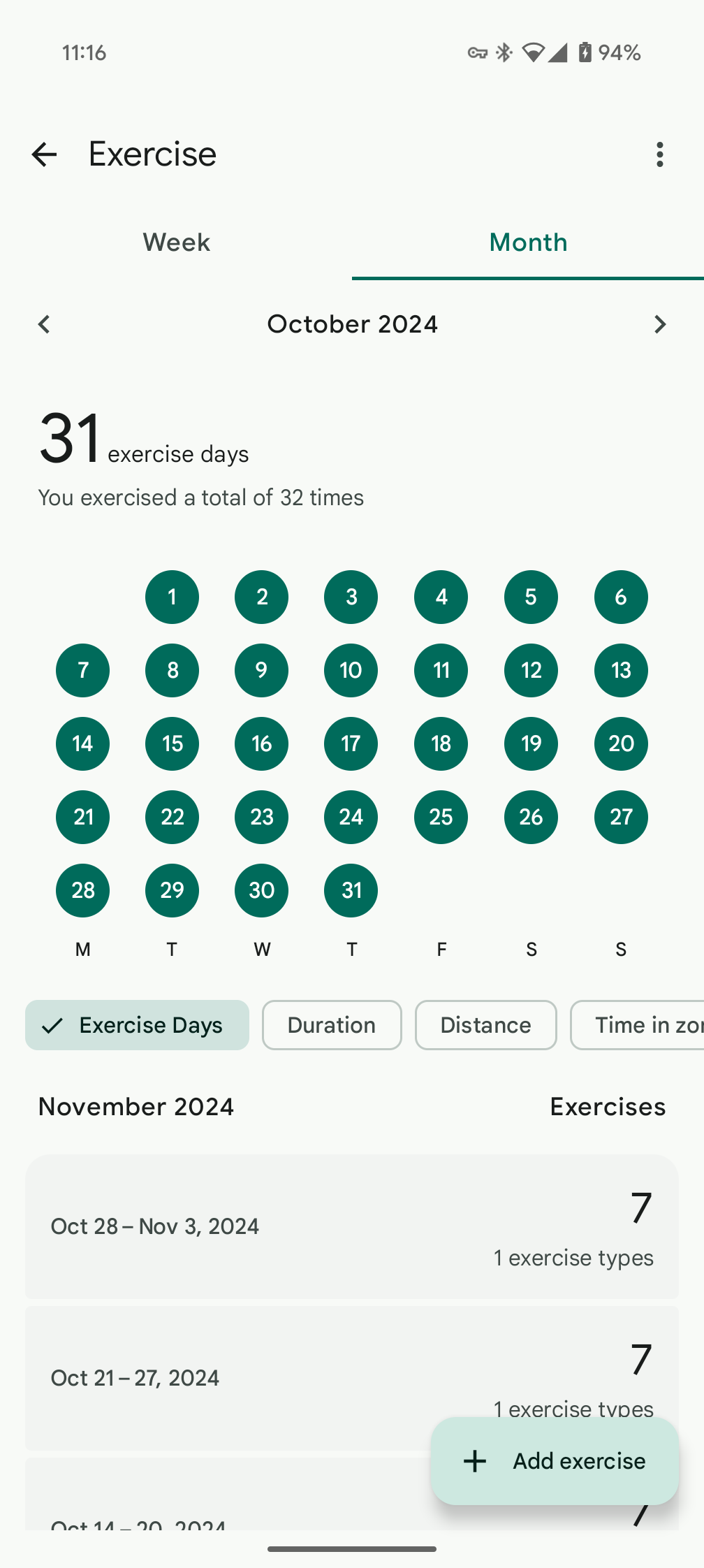 Below are monthly Fitbit exercise reports showing back in March of 2024 where I stopped missing exercise days.