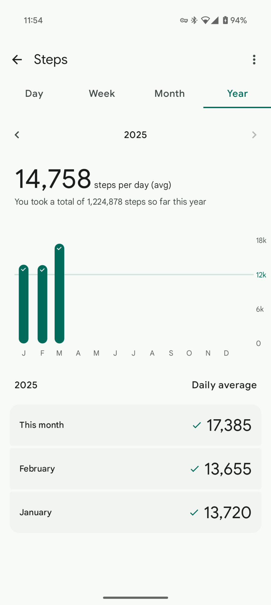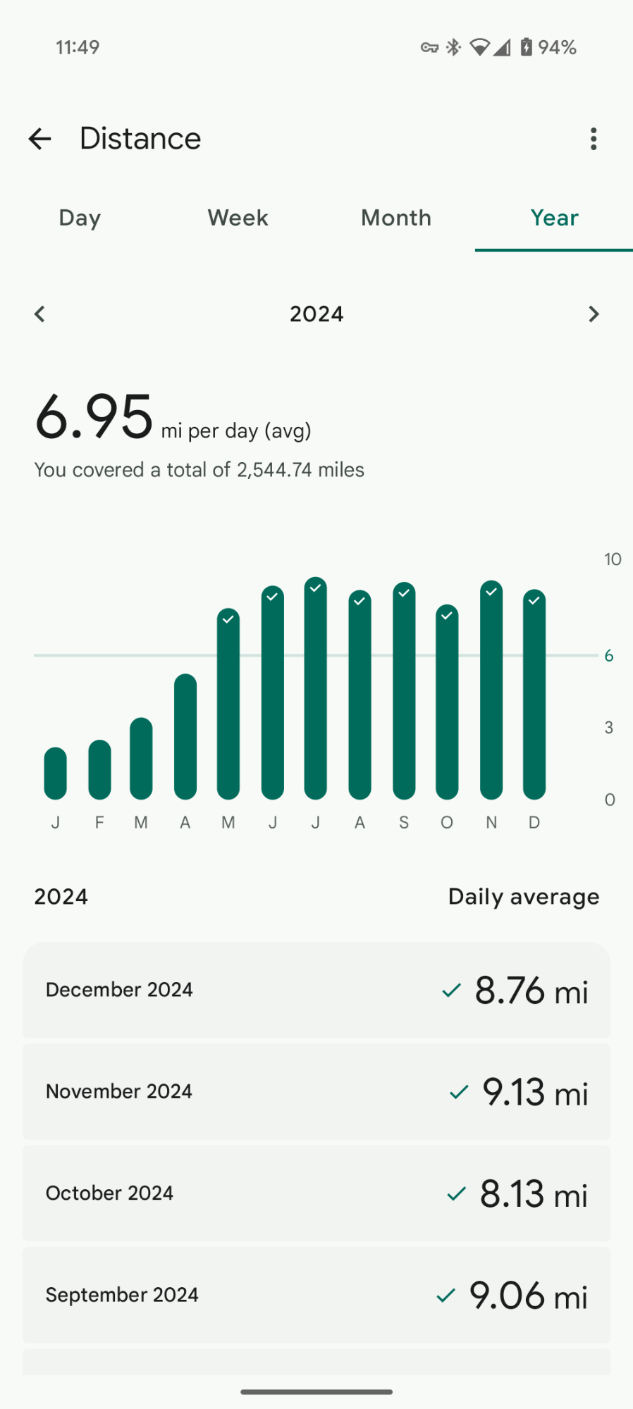 This year I’m averaging 14,758 steps per day for a total of 1,224,878 steps