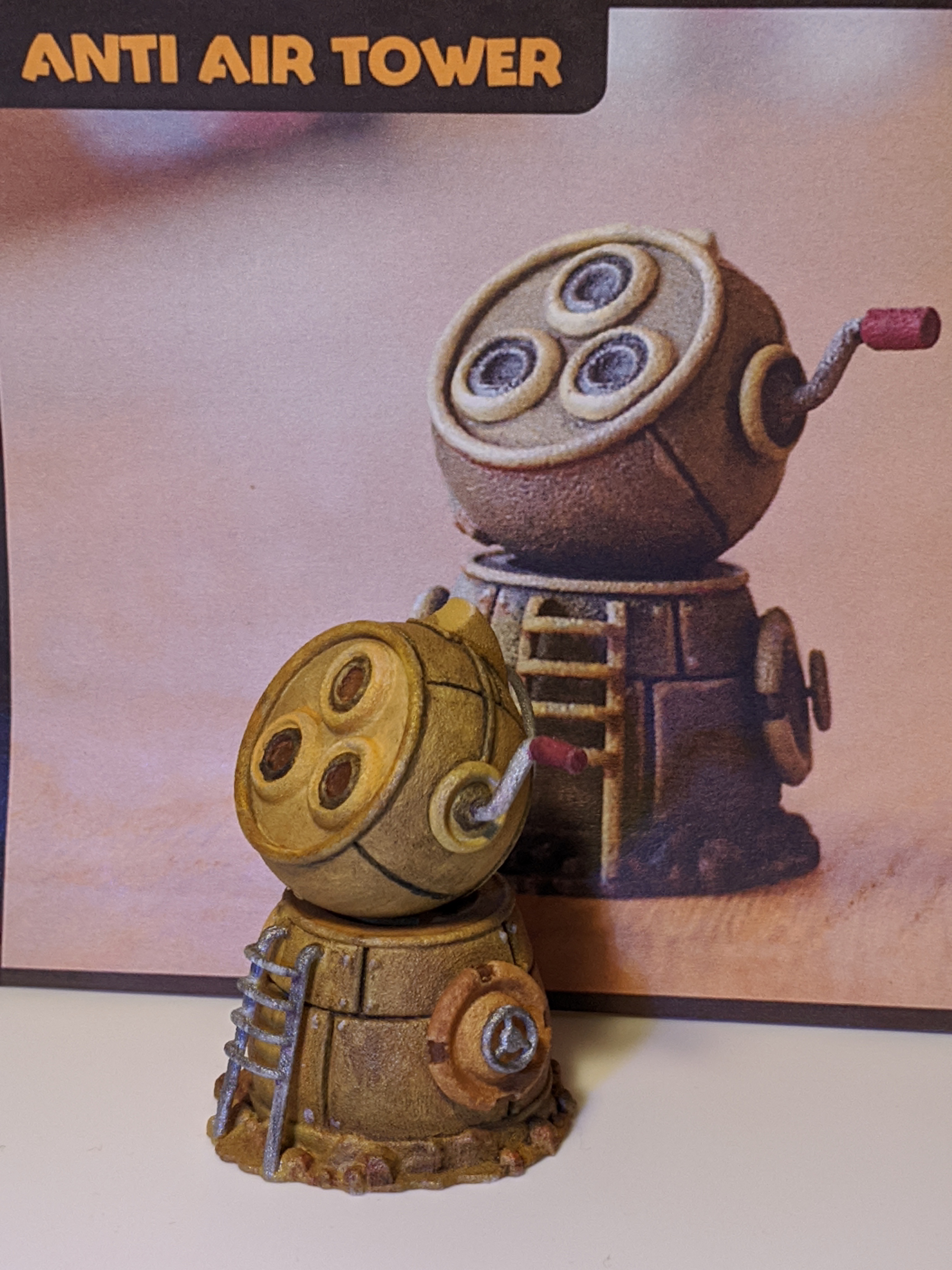 The larger print-outs were helpful when understanding the mix of colors on the miniatures. One image I wished I had was the back of each miniature. Especially with Tikiman deciding hair color and shield color.