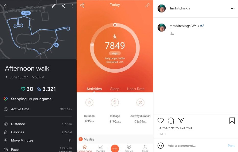 I’m currently using three different walking routes. The one hour 30 minute walk is typically on Saturday and Sunday and the only walk of the day. I mix the 30 minute and 1 hour walks for two walks a day. I’m likely to start doing two one hour walks day. Any problems with recovery and I’ll drop back down to a combination of a one hour and a 30 minute per day.