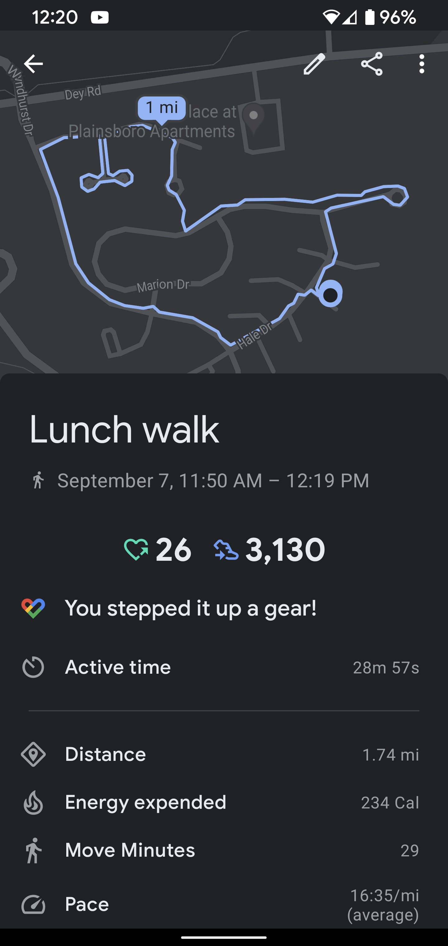 Took me a little longer using a shorter stride and slower pace to keep my calf from hurting. Worked pretty well.